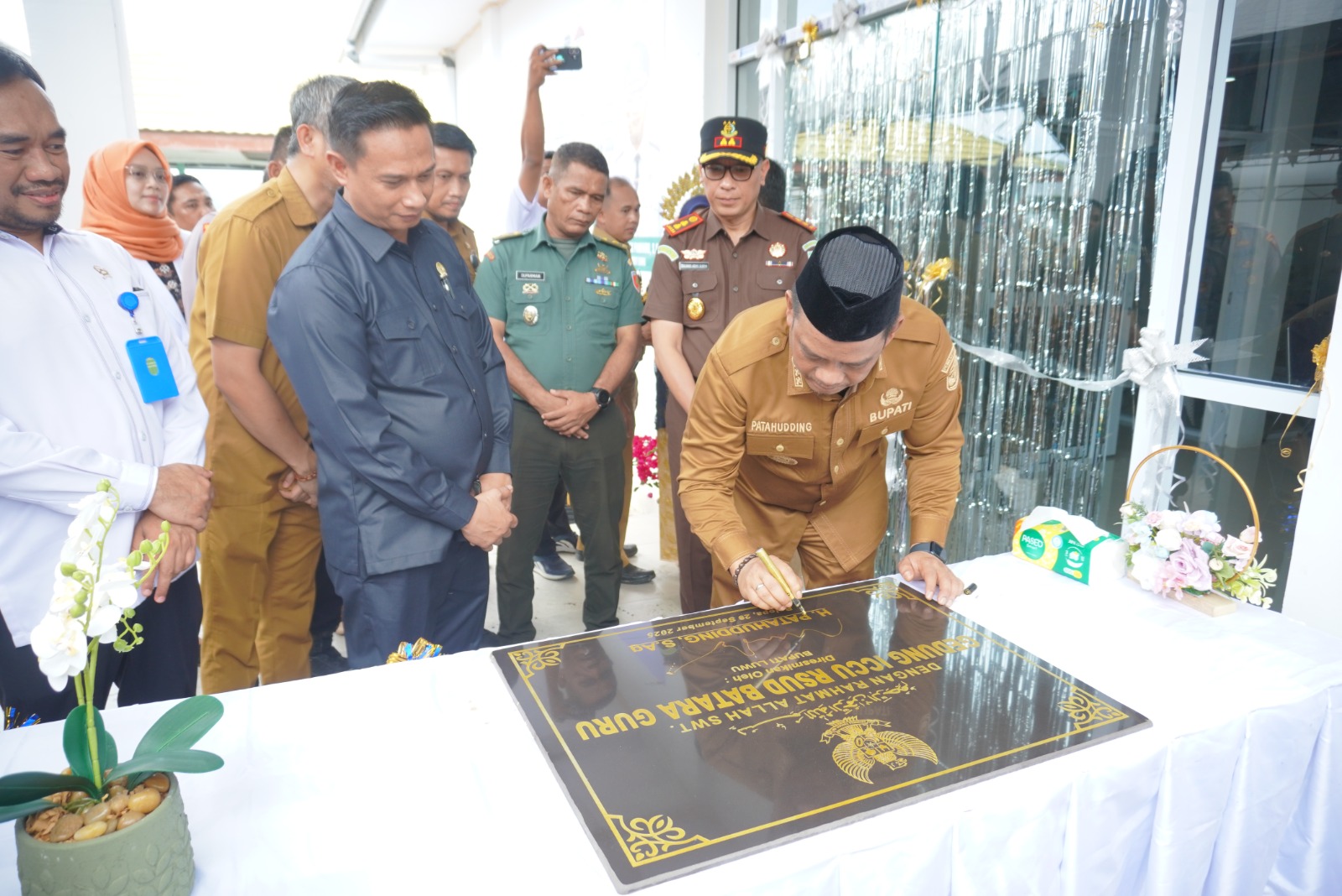 LUWU – Bupati Luwu, H. Patahudding meresmikan pemanfaatan gedung Intensive Coronary Care Unit (ICCU) atau Unit Perawatan Jantung Intensif di Rumah Sakit Umum Daerah (RSUD) Batara Guru Belopa, Kabupaten Luwu, Senin (29/9/2025). Peresmian gedung ICCU ini bertepatan pula Hari Ulang Tahun RSUD Batara Guru ke-20 Tahun.