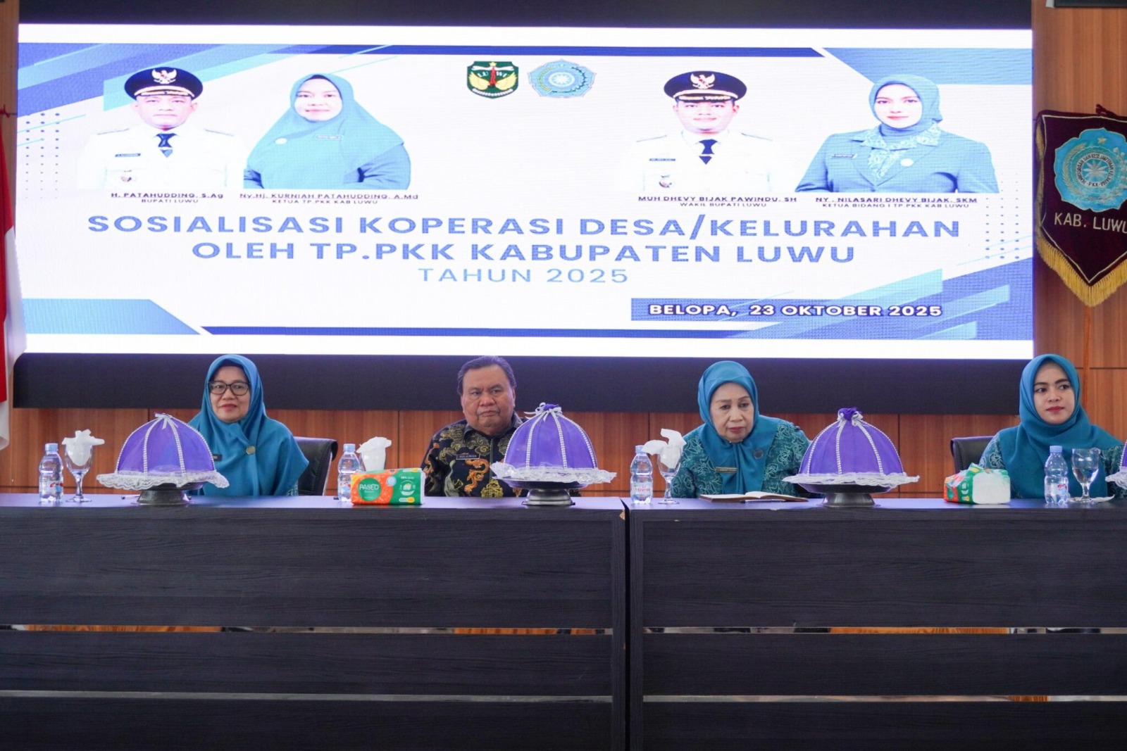 LUWU — Sekretaris Daerah Kabupaten Luwu, Drs. H. Sulaiman, MM, membuka kegiatan Sosialisasi Koperasi Desa/Kelurahan Tim Penggerak PKK Kabupaten Luwu di Aula Andi Kambo, Kompleks Perkantoran Bupati Luwu, Kamis (23/10/2025).