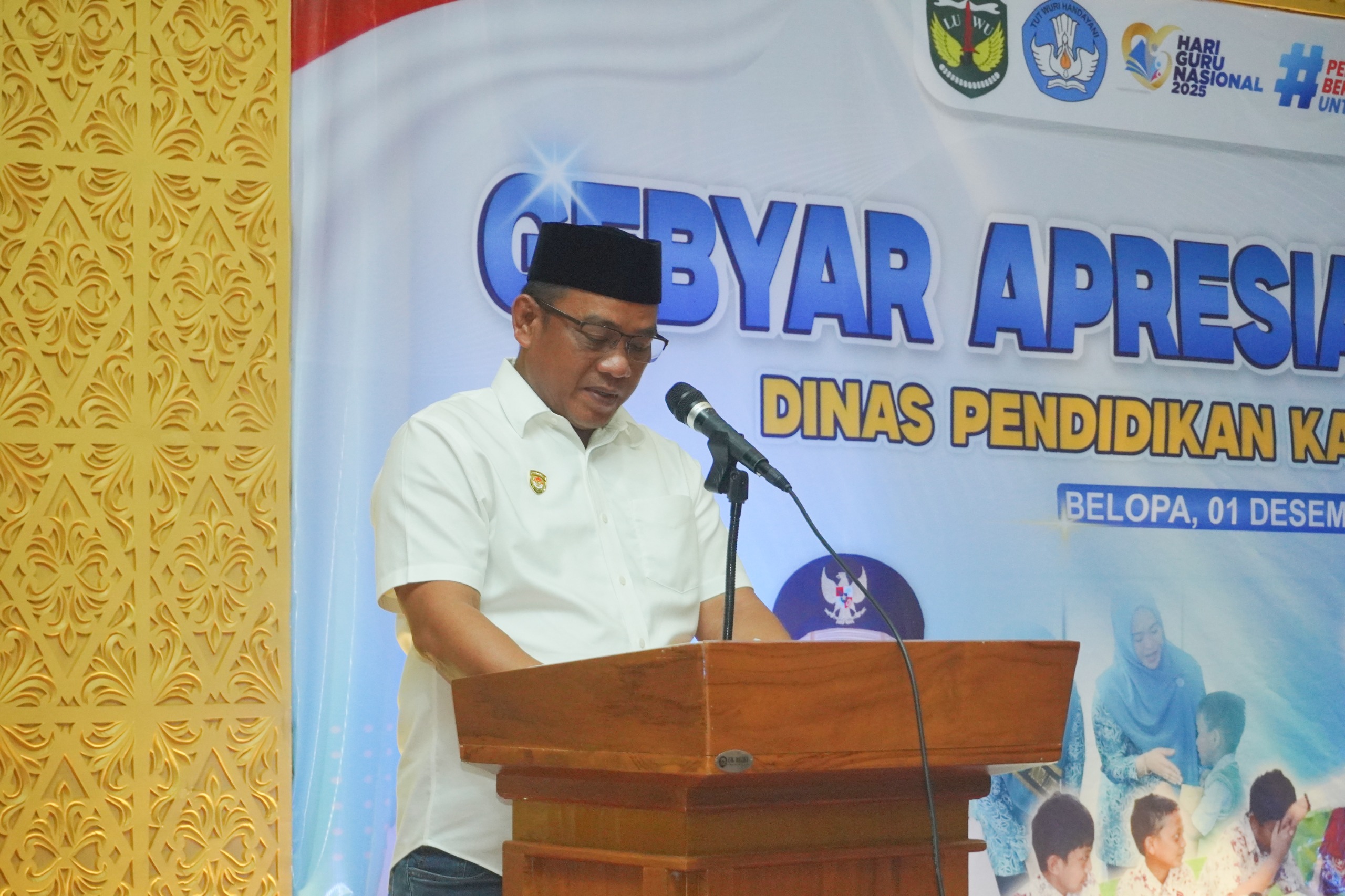 Dalam Sambutanya Kepala Dinas Pendidikan Mengatan Acara Gebyar Apresiasi GTK Tahun 2025 diharapkan dapat memacu semangat dan dedikasi seluruh Guru dan Tenaga Kependidikan di Kabupaten Luwu untuk terus berkarya demi masa depan pendidikan yang lebih baik.