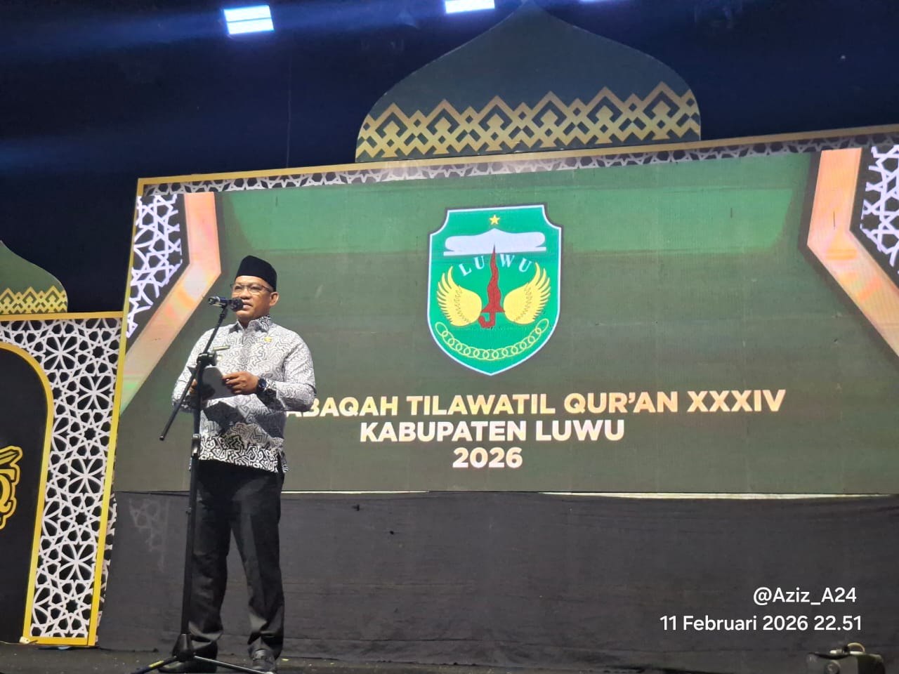 LUWU – Bupati Luwu, Patahudding, membuka secara resmi Musabaqah Tilawatil Qur’an (MTQ) XXXIV Tingkat Kabupaten Luwu yang digelar di Lapangan Padang Sappa, Kecamatan Ponrang, Rabu (12/2/2025). Dalam kegiatan tersebut, Bupati menekankan pentingnya pembentukan generasi Qur’ani.
