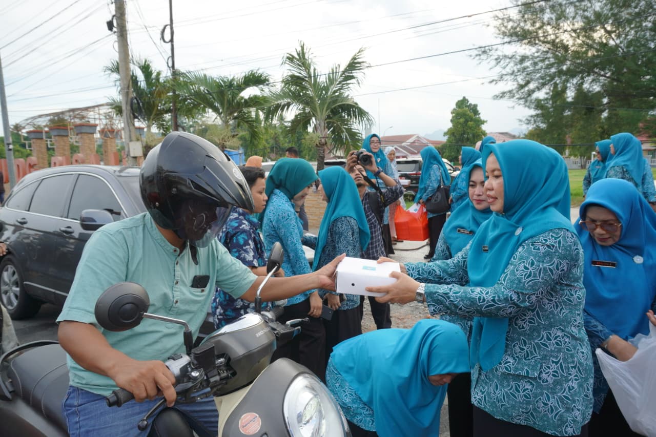 LUWU — Tim Penggerak PKK Kabupaten Luwu bersama Dharma Wanita Persatuan Kabupaten Luwu menggelar Amaliah Ramadhan yang dirangkaikan dengan pembagian takjil, pengajian, dan buka puasa bersama di Jalan Poros Trans Sulawesi, Belopa serta di Kantor Tim Penggerak PKK Kabupaten Luwu, Jumat (13/3/2026).