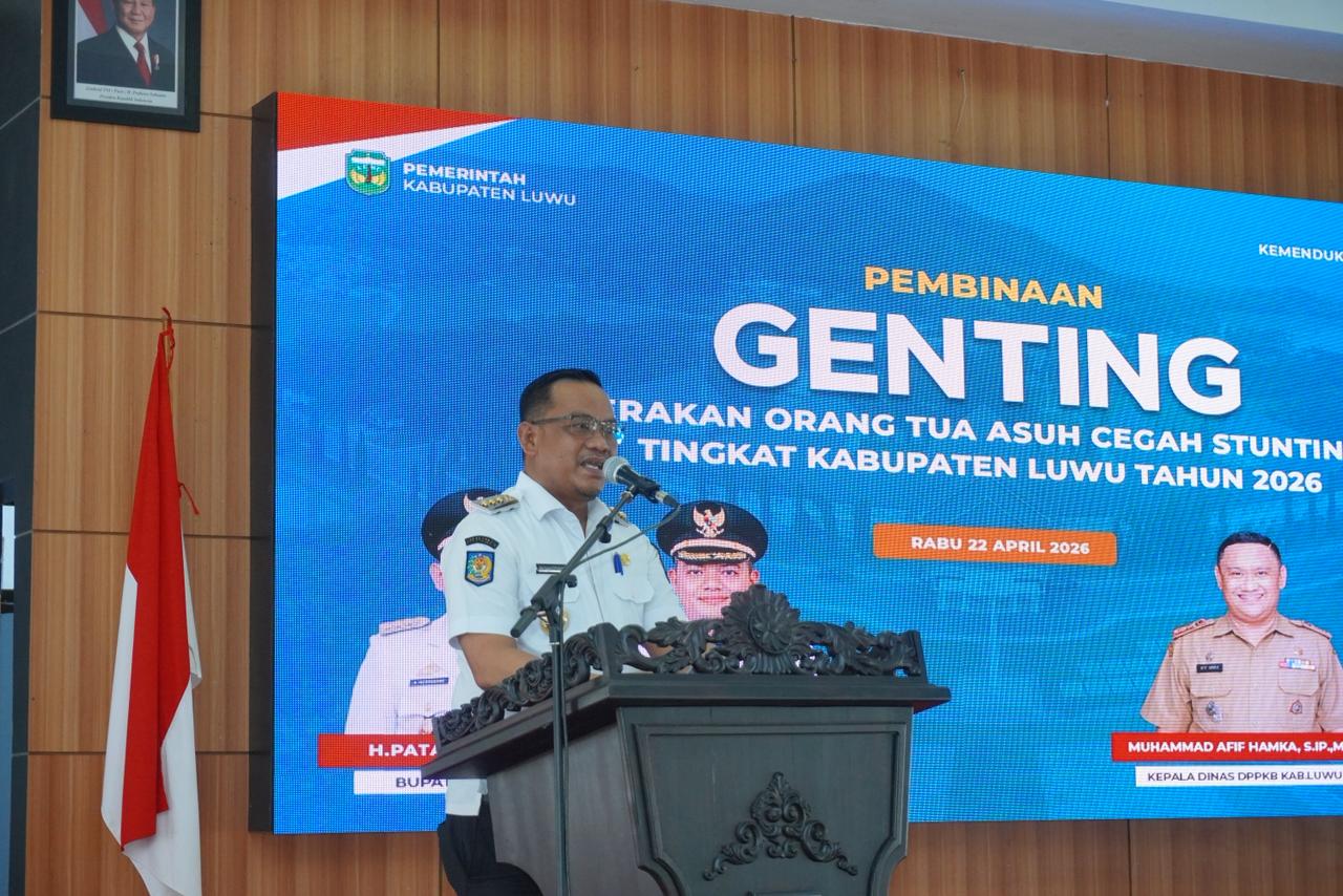 LUWU – Bupati Luwu, Patahudding, secara resmi membuka kegiatan Pembinaan Gerakan Orang Tua Asuh Cegah Stunting (GENTING) yang digelar di Ruang Pola Andi Kambo, Rabu (22/4/2026).
